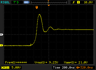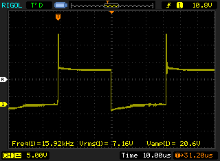 Zoomed spike shape, NE555 overshoot or "kickback" from dynamic speaker induction.